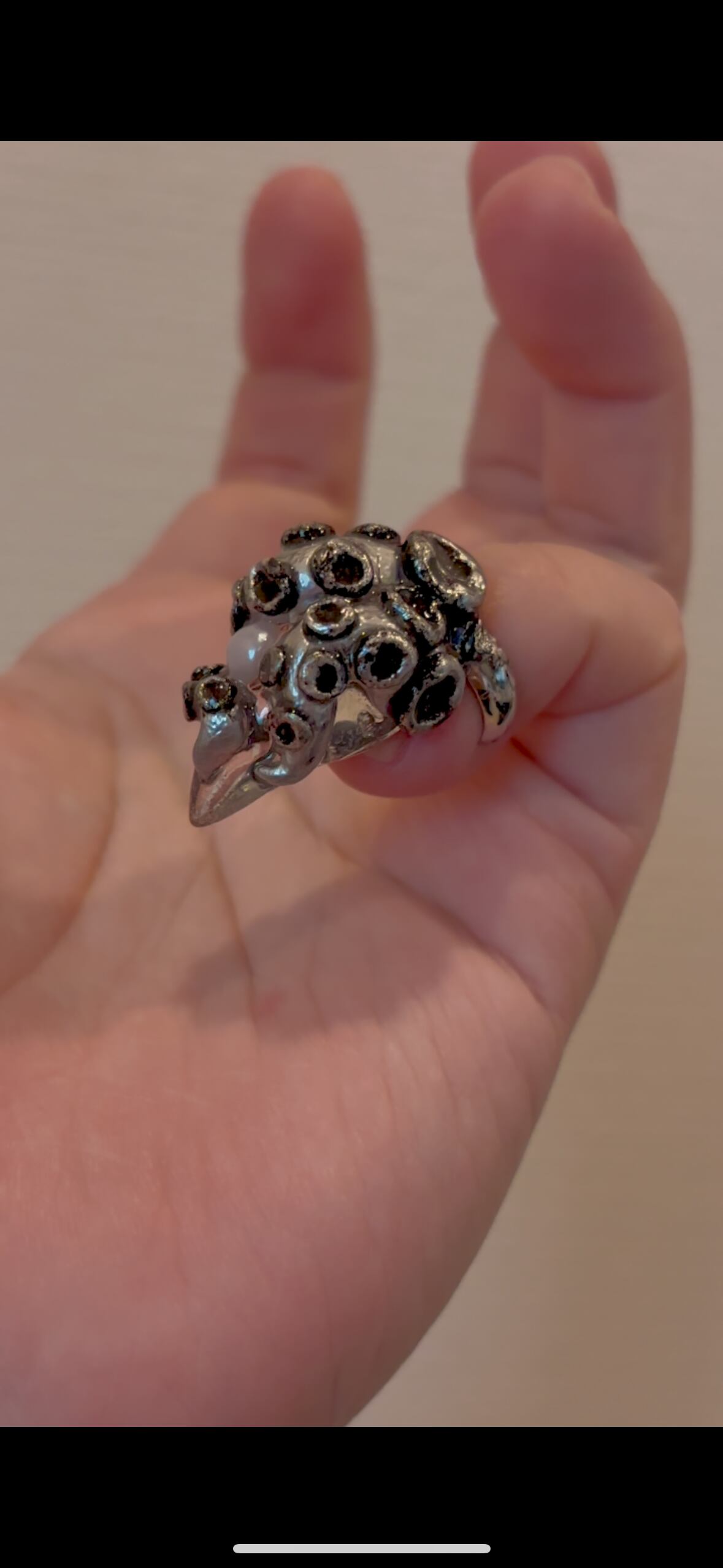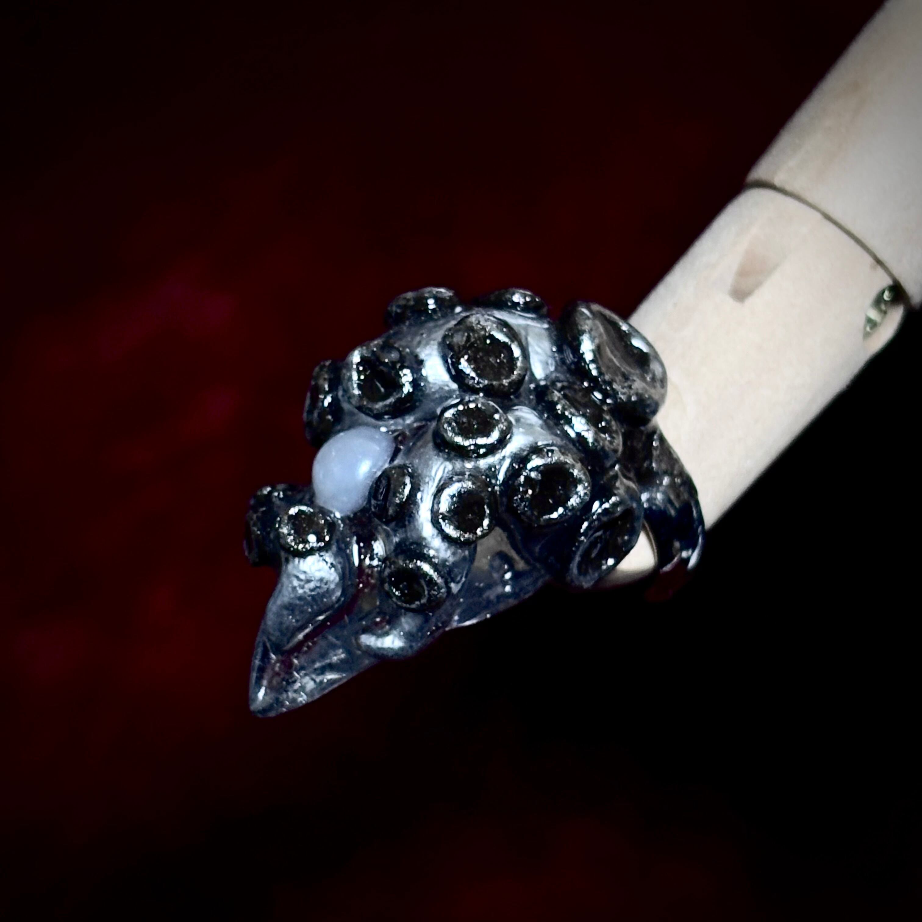 立体的なタコの脚が絡まったモチーフのキャットネイルネイルリングです。