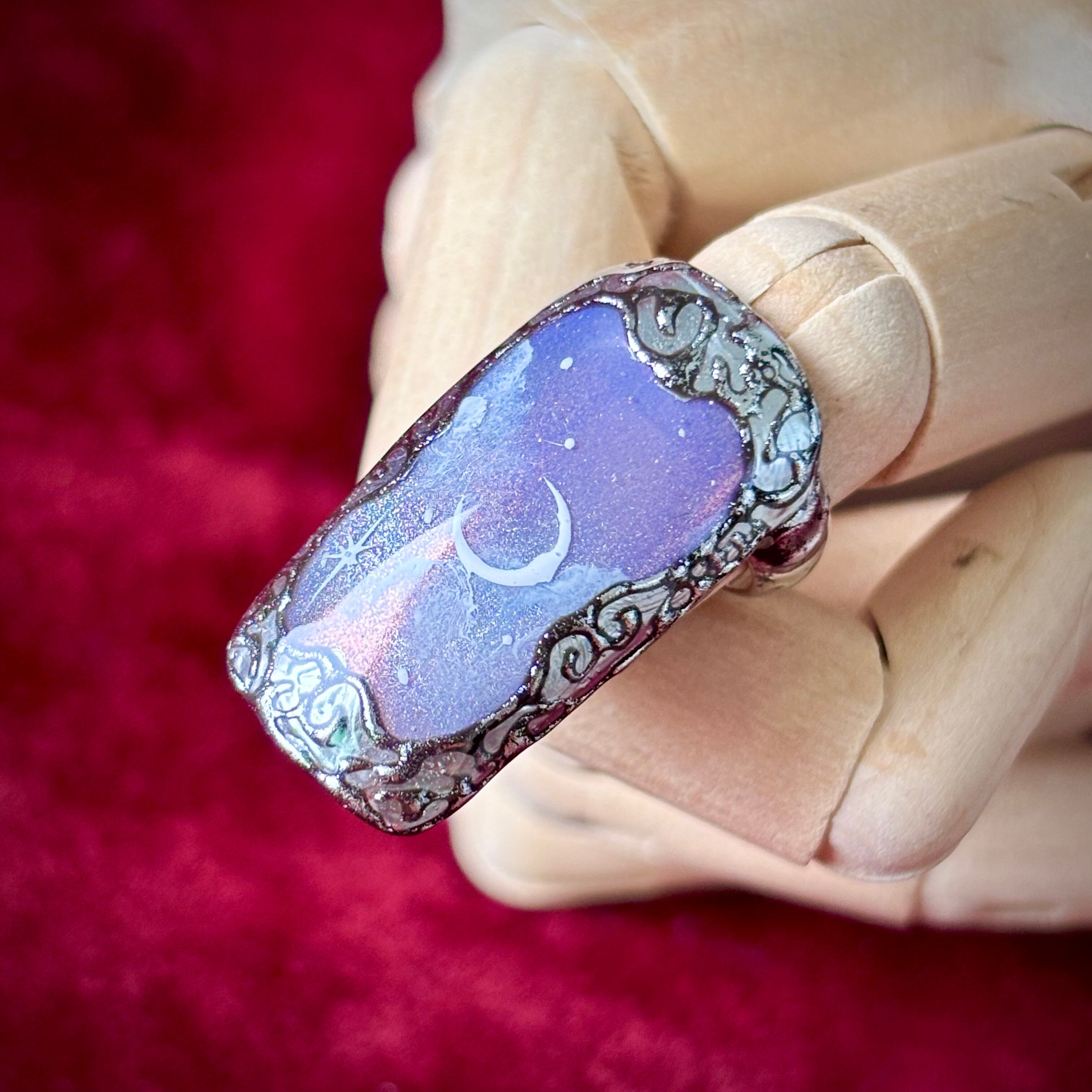 豪華な装飾の額縁から、星空を望むネイルリングです。スクエアタイプのフォルムで、大きめのサイズは指輪として使ったり、重ね付けしてアーマーリングのようにもお楽しみいただけます。