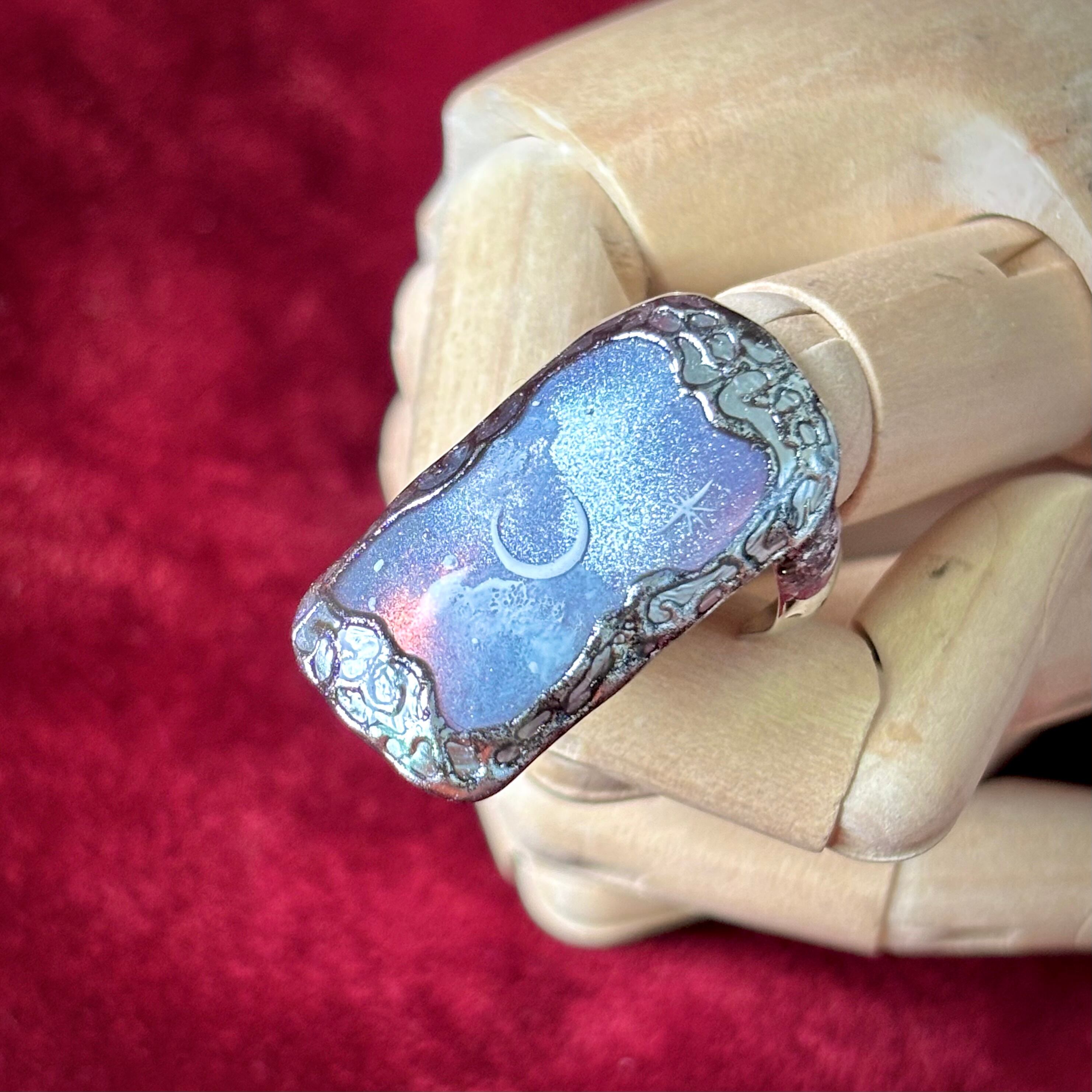 豪華な装飾の額縁から、星空を望むネイルリングです。スクエアタイプのフォルムで、大きめのサイズは指輪として使ったり、重ね付けしてアーマーリングのようにもお楽しみいただけます。