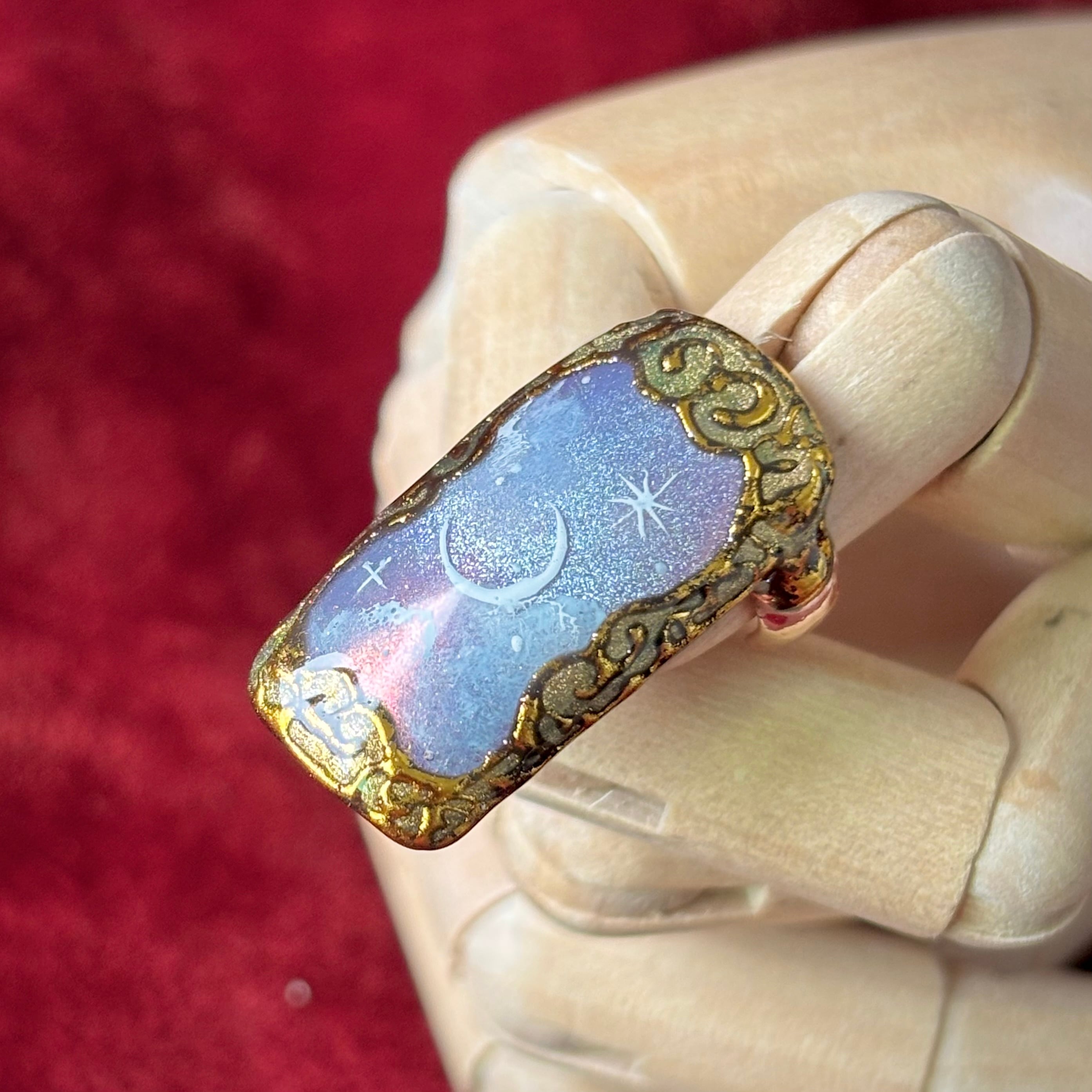 豪華な装飾の額縁から、星空を望むネイルリングです。スクエアタイプのフォルムで、大きめのサイズは指輪として使ったり、重ね付けしてアーマーリングのようにもお楽しみいただけます。
