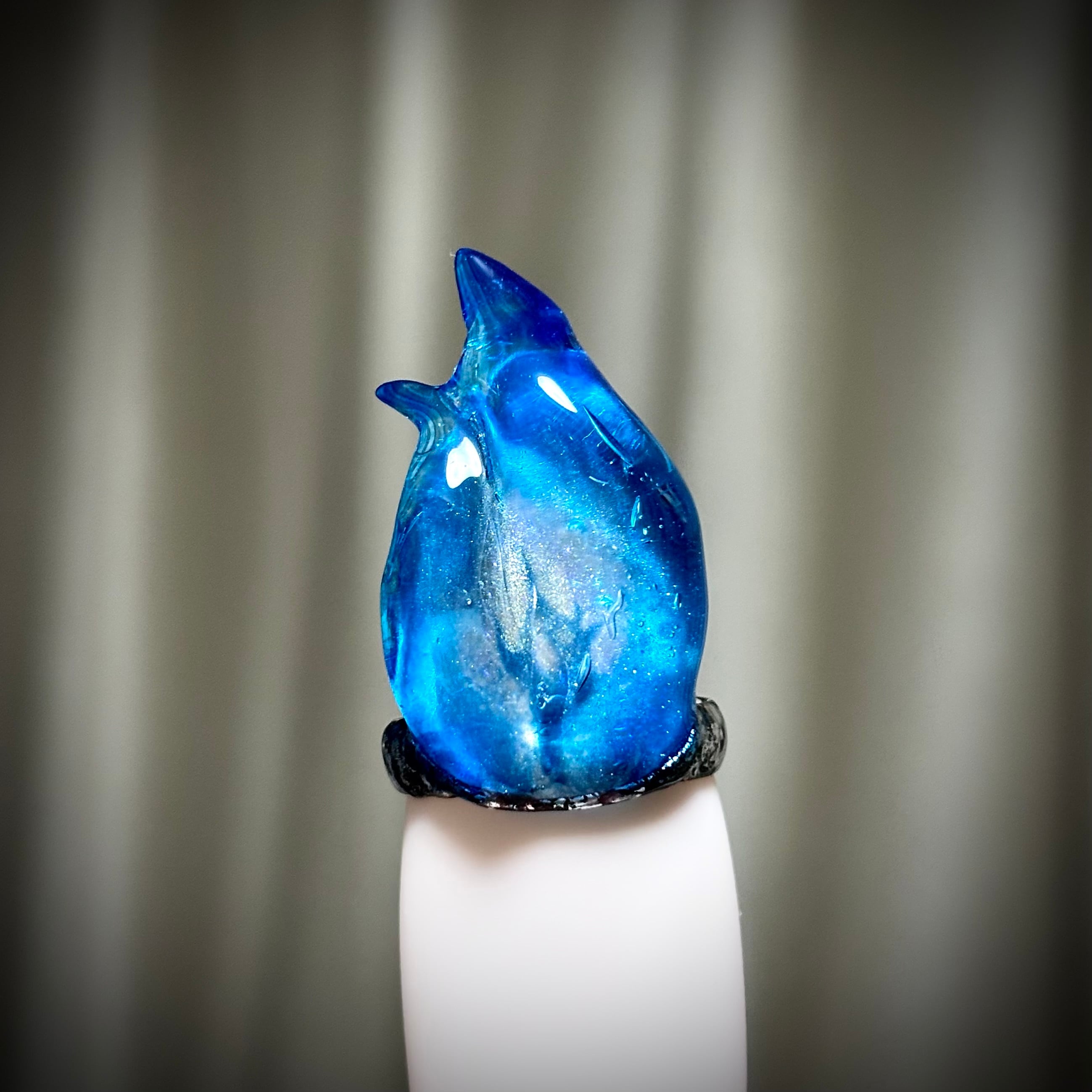 指先にガラスのように透き通った炎を灯せるネイルリングです。