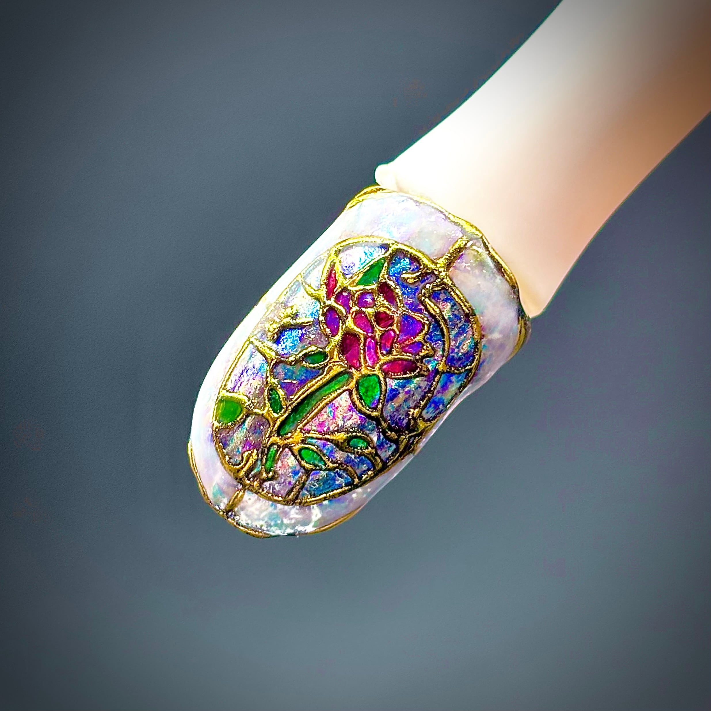 ステンドグラス風のデザインのネイルリングです。